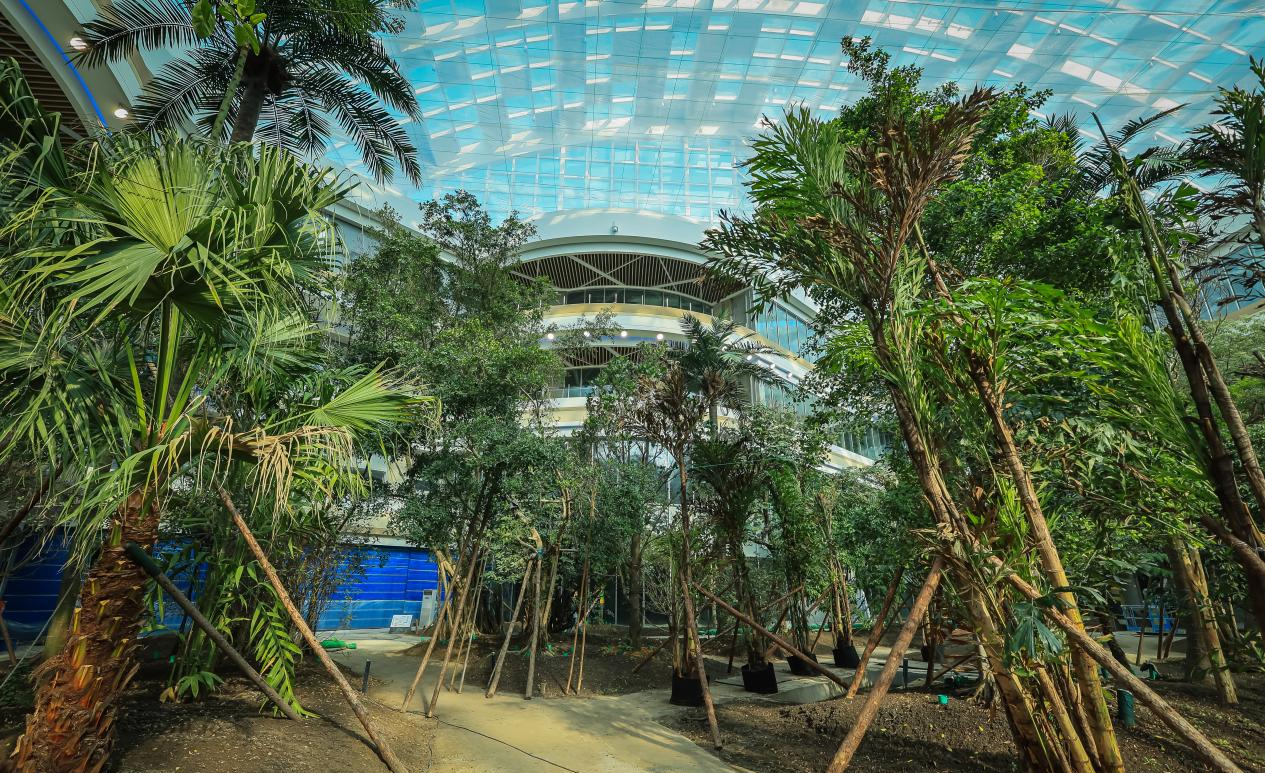 走進建設中的長春萬達茂,各商家即將進入到裝修階段,記者看到在碩大的一樓空間內,兩側密集分布著餐飲、服裝、文創(chuàng)、汽車等不同業(yè)態(tài)的品牌商家。穿過商場來到中庭,這里就是備受矚目的室內雨林,在東北難得一見的熱帶珍稀植物在這里茂盛生長。