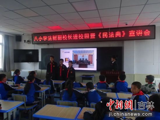 中新網(wǎng)吉林新聞6月1日電 (譚偉旗 孟鴿)為加大《中華人民共和國民法典》宣傳普及力度,營造尊法、學(xué)法、守法、用法的良好校園氛圍,近日,敦化基層林區(qū)法院民事審判團(tuán)隊(duì)法官干警走進(jìn)敦化市第八小學(xué),深入課堂為師生們開展了一場(chǎng)《民法典》知識(shí)宣傳教育主題講座。