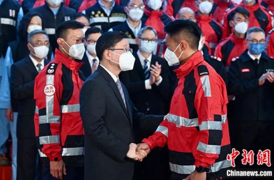迎接儀式上,香港特區(qū)行政長官李家超與救援隊隊員逐一握手問候后致辭表示,救援隊在土耳其冒著風險奮勇救人,充分體現了愛心和專業(yè),充分展示特區(qū)政府公務員團隊的優(yōu)秀能力,充分彰顯無國界的互助精神,他為救援隊的表現深感驕傲。