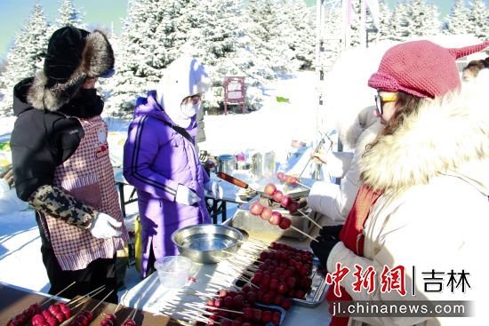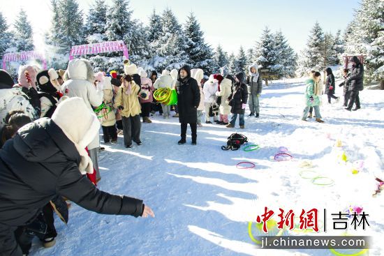 啟動儀式后,現(xiàn)場舉行了豐富的互動體驗(yàn)活動,包括民族歌舞快閃、吉他彈唱等演出,剪紙、鐵藝、糖人等非遺技藝展示,以及雪地拔河、趣味套圈等冰雪游戲。此外,參雞湯、關(guān)東煮等特色美食也為游客帶來了溫暖的味覺體驗(yàn)。游客們還在粉色雪景網(wǎng)紅拍照點(diǎn)和溫馴麋鹿互動區(qū)駐足打卡,定格浪漫瞬間。