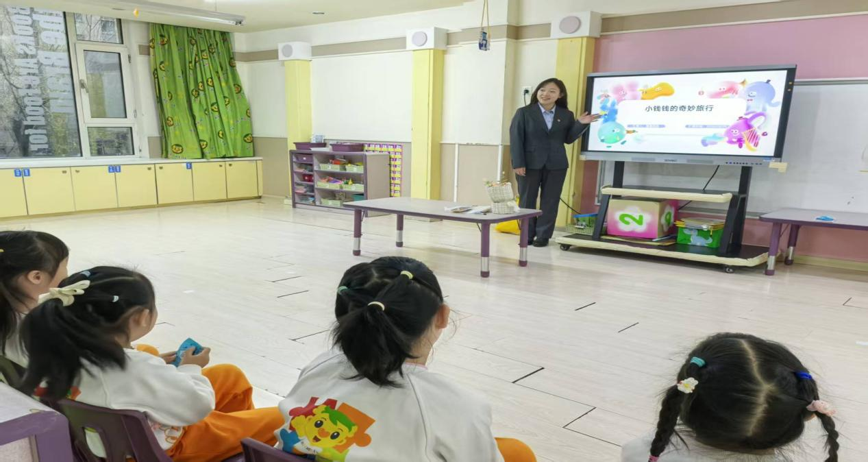 考慮到幼兒注意力特點,主講人王琳還設(shè)計了“錢幣小法官”游戲:她展示不同場景卡片,比如“小朋友幫媽媽保管手機(jī),不隨便點開付款鏈接”“陌生人要借手機(jī)轉(zhuǎn)賬,小朋友說‘要問爸爸媽媽’”,讓孩子們判斷“做得對不對”。孩子們積極舉手,有的站起來模仿卡片里的小朋友說話,有的拉著同伴一起討論,原本抽象的安全規(guī)則,變成了能判斷、能模仿的具體行為,現(xiàn)場笑聲與回答聲此起彼伏,連老師都忍不住加入互動。