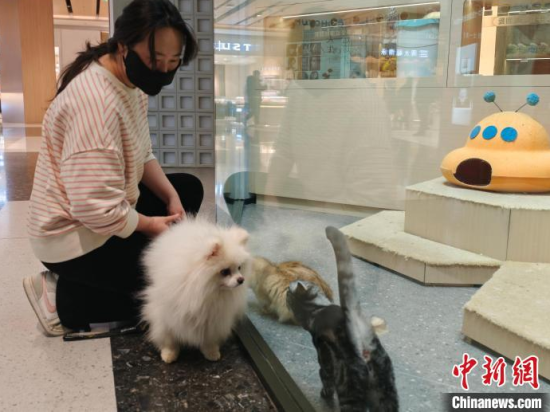 位于吉林長春的一座寵物友好商場(chǎng)內(nèi),張慧正在對(duì)寵物狗進(jìn)行一些特別的訓(xùn)練。