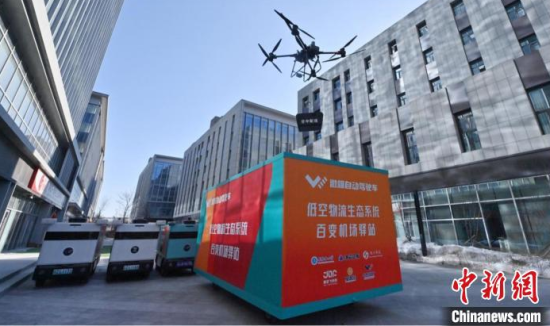 在位于長(zhǎng)春芯光產(chǎn)業(yè)園的無(wú)人機(jī)機(jī)場(chǎng)驛站記者看到,一架無(wú)人機(jī)精準(zhǔn)調(diào)整飛行姿態(tài),在空中稍經(jīng)停留,只需數(shù)秒即可通過繩索穩(wěn)穩(wěn)將快遞箱懸吊運(yùn)送至無(wú)人機(jī)機(jī)場(chǎng)驛站內(nèi),隨后貨物經(jīng)分揀裝入無(wú)人配送車送至周邊居民和商戶手中。