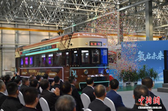 10月16日,中國首列氫能文旅列車“氫春號”在吉林長春正式下線。 中新社記者 張瑤 攝