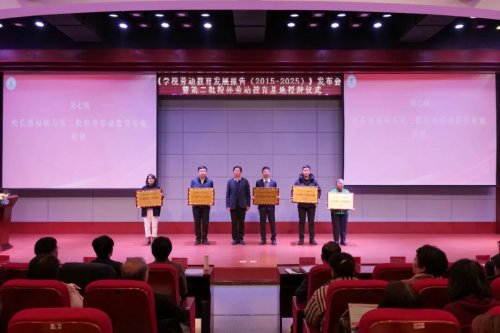 校長潘福林為各基地單位代表授予授牌。此次新增授牌基地涵蓋“紅色勞動(dòng)傳承、鄉(xiāng)村振興實(shí)踐、智能勞動(dòng)體驗(yàn)、志愿服務(wù)實(shí)踐、非遺文化傳承”五個(gè)類別,將進(jìn)一步拓寬勞動(dòng)教育實(shí)踐邊界,為學(xué)生提供“在田間地頭學(xué)勞動(dòng)、在工廠車間悟技能、在紅色沃土鑄信念”的多元化場(chǎng)景。