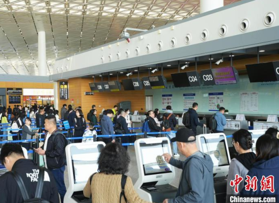 清明假期,旅客在長春龍嘉國際機場排隊值機。(吉林機場集團供圖)