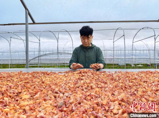 工作人員正在檢查晾曬的新產(chǎn)品!∈橛 攝