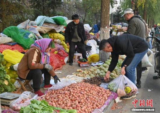 10月16日,吉林長春,市民在挑選胡蘿卜。當(dāng)下正是中國東北民眾“囤秋菜”的季節(jié),滿載大蔥、白菜、胡蘿卜等秋菜的貨車停靠在長春市區(qū)指定銷售區(qū)域,市民們穿梭挑選,忙碌地儲備過冬秋菜。中新社記者 張瑤 攝