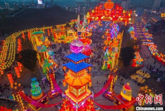中新社四川自貢2月5日電 題:“南國(guó)燈城”元宵夜 彩燈萬(wàn)盞慰相思