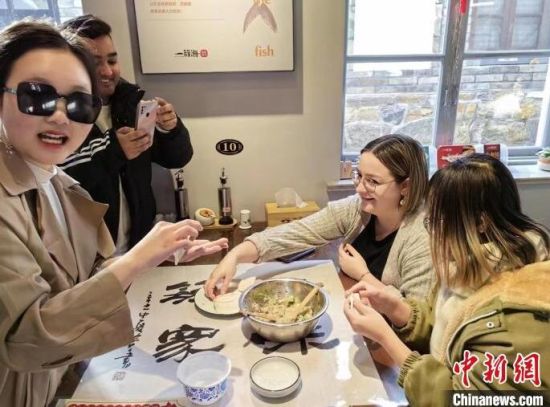 圖為外國留學生在山東煙臺學習包鲅魚水餃。 中新社記者 李長亮 攝