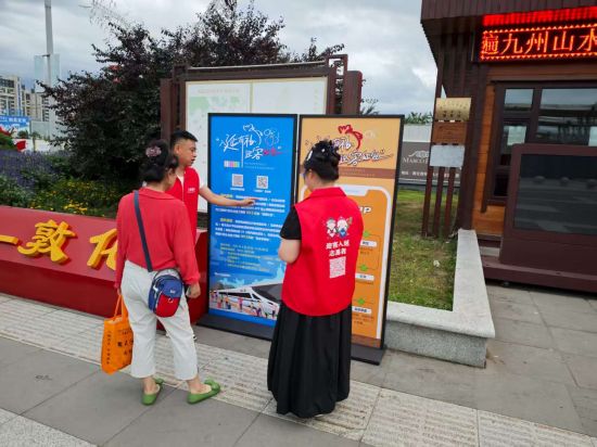 做好“導(dǎo)航標(biāo)”,貼心關(guān)懷到身邊。在窗口開設(shè)前期,團(tuán)市委就已與團(tuán)州委、市文廣旅局、敦化高鐵站等進(jìn)行深入溝通,詳細(xì)了解崗位職責(zé)、服務(wù)標(biāo)準(zhǔn)與旅客需求,并有針對性地開展人員選拔及崗前培訓(xùn),招募9名素質(zhì)優(yōu)秀、能力出眾的青年加入志愿服務(wù)隊(duì)伍。除提供政策指引外,志愿者們還負(fù)責(zé)引導(dǎo)旅客出行,熱情解答疑問,為重點(diǎn)旅客提供貼心服務(wù)。在“十一”黃金周期間,更為來敦游客送上由敦化青少年手繪的創(chuàng)意明信片,宣傳延邊朝鮮族民俗和敦化美食美景,為旅客們帶來了細(xì)致入微、周到便捷的出行體驗(yàn)。