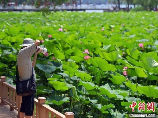 7月12日,在吉林長春南湖公園荷花池內(nèi),3萬余株荷花迎來觀賞期,放眼望去,“惟有綠荷紅菡萏,卷舒開合任天真”的景色盡收眼底,引賞花市民駐足觀賞。(完)