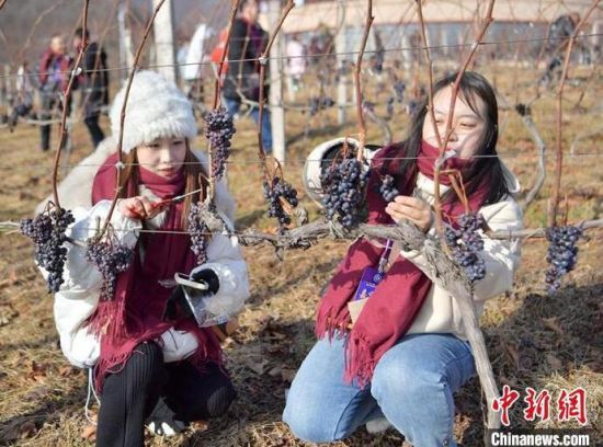 12月9日,吉林集安鴨綠江河谷,游客采摘冰葡萄。集安市所在的鴨綠江河谷與法國著名葡萄酒產(chǎn)地羅納河谷處于同一緯度,同屬世界葡萄酒黃金生產(chǎn)帶,當?shù)厮a(chǎn)的冰葡萄是釀制冰酒的主要原料。目前,鴨綠江河谷冰葡萄已經(jīng)進入最佳采摘時期。(完)