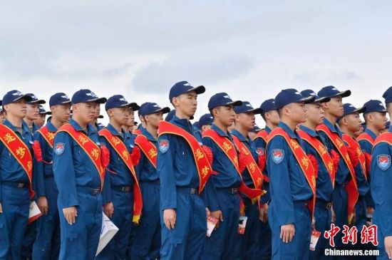 8月1日,吉林長春,新飛行學員正在列隊出場。8月1日到2日,中國空軍使用多架運-20,從全國多個登機點,集中運送新錄取的飛行學員到空軍航空大學報到。(中新社記者 張瑤 攝)