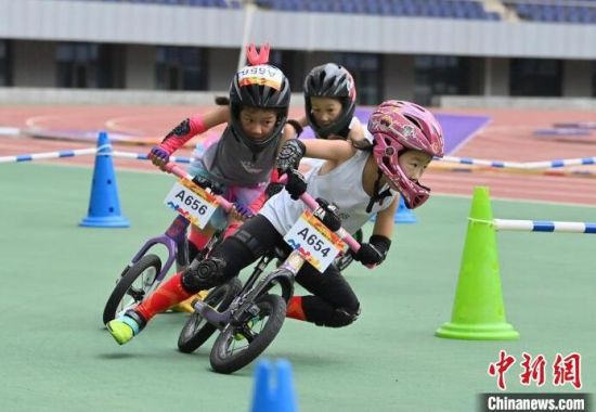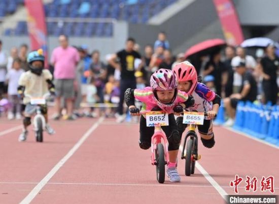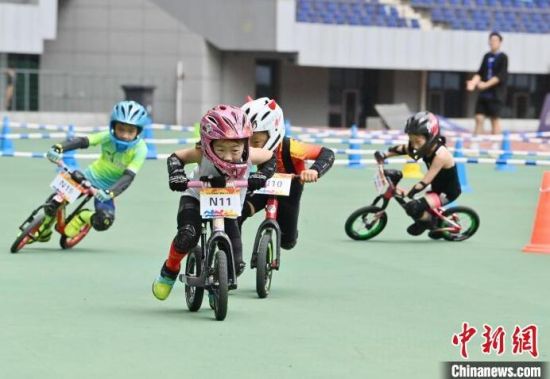 8月11日,吉林省“奔跑吧 少年”兒童騎行系列賽在吉林長春舉行,數(shù)百名2歲至12歲的“萌娃小騎士”在賽場上你追我趕比拼車技,上演一場“Q版”速度與激情。圖為比賽現(xiàn)場。中新社記者 張瑤 攝
