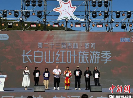 開幕式上,嘉賓為紅葉紅人蛟河文旅推薦團(tuán)代表頒發(fā)了聘書,蛟河市紅葉谷還與長春市動(dòng)植物公園簽署戰(zhàn)略合作協(xié)議。此外,還設(shè)置了“蛟有禮”區(qū)域公共品牌發(fā)布環(huán)節(jié)。
