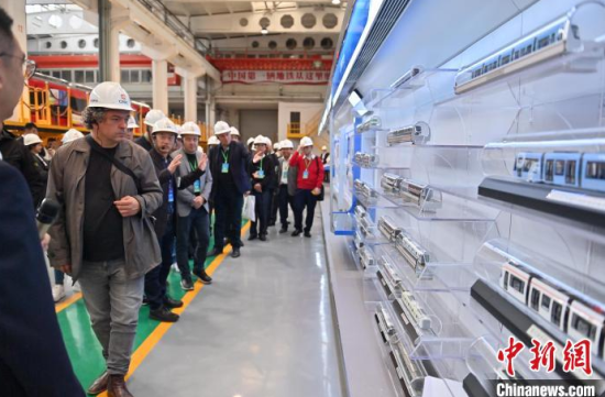 10月14日,吉林長春,外賓在中車長客體驗地鐵列車。當(dāng)天,50多個國家的200多名政黨領(lǐng)導(dǎo)人、部分外國駐華使節(jié)和外國在華工商界代表等到訪吉林長春,赴中國一汽、長光衛(wèi)星、中車長客等科技企業(yè)參觀,點贊制造業(yè)尋求合作機會。中新社記者 張瑤 攝