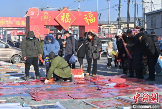 1月20日,民眾在長春樂山大集上選購商品。歷經(jīng)百年的樂山大集,是長春市具有代表性的傳統(tǒng)大集。春節(jié)臨近,大集更加熱鬧,傳統(tǒng)年貨一應俱全,民眾辦年貨、品美食,熱鬧非凡。中新社記者 張瑤 攝