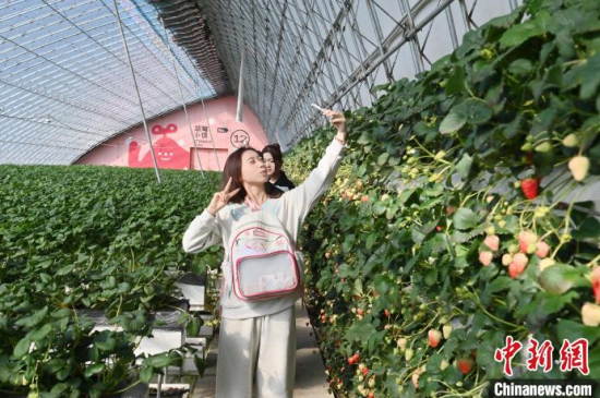 3月14日,游客在位于吉林省長春市雙陽區(qū)奢嶺街道的采摘園采摘草莓。當天,第十一屆雙陽奢嶺溫泉草莓旅游季拉開帷幕,大棚內的草莓也正迎來盛果期。據(jù)悉,奢嶺草莓園是吉林省內規(guī)模最大的草莓種植、采摘基地。中新社記者 張瑤 攝