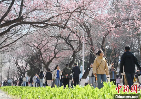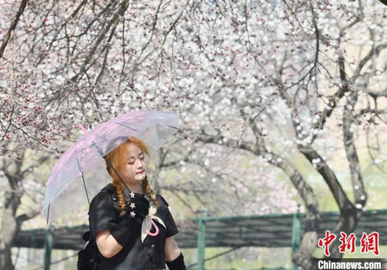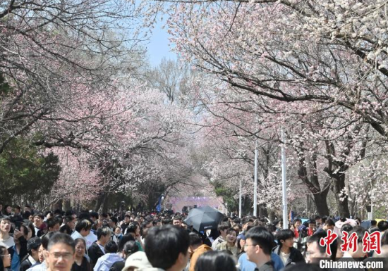 4月20日,吉林長春,吉林大學(xué)校園內(nèi)杏花競相綻放,匯成粉白色的海洋,吸引市民前來賞花、拍照。 中新社記者 張瑤 攝