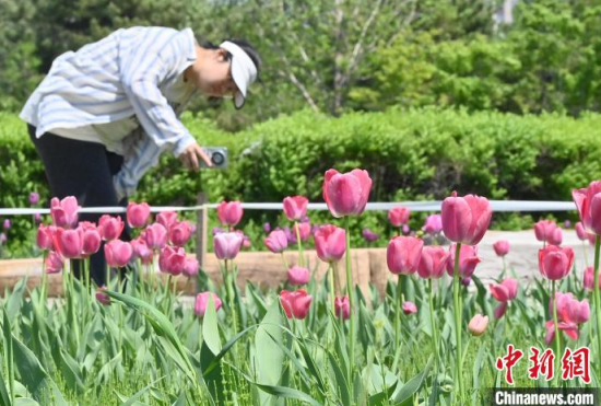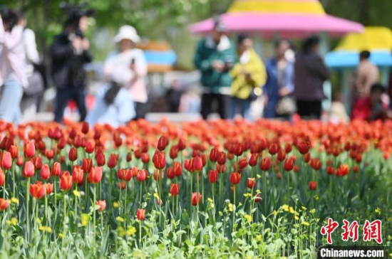 5月15日,在長(zhǎng)春市長(zhǎng)春公園內(nèi),近十萬株郁金香競(jìng)相綻放,吸引了眾多游客前來觀賞。當(dāng)天,“幸福匯·郁見美好”長(zhǎng)春公園郁金香主題觀賞季系列活動(dòng)正式啟幕,游客在賞花觀景中享受夏日清涼。中新社記者 張瑤 攝