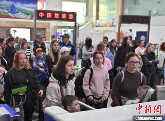 5月30日,吉林琿春,俄羅斯游客在商場購物。近年來,吉林省琿春市依托邊貿(mào)便利、服務(wù)完善等優(yōu)勢,正成為俄羅斯游客熱門跨境消費(fèi)目的地。據(jù)琿春出入境邊防檢查站統(tǒng)計,今年以來,經(jīng)琿春口岸出入境的客流量超15萬人次。中新社記者 張瑤 攝