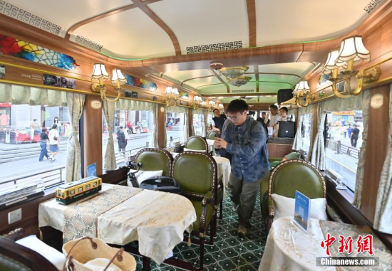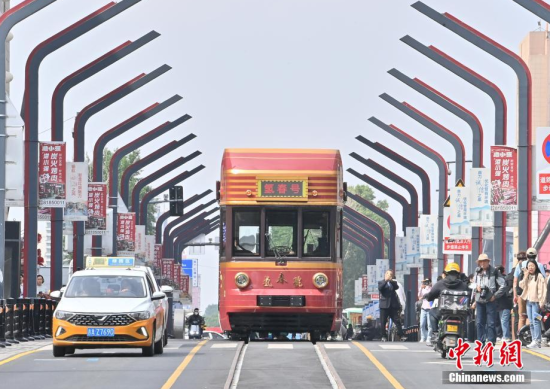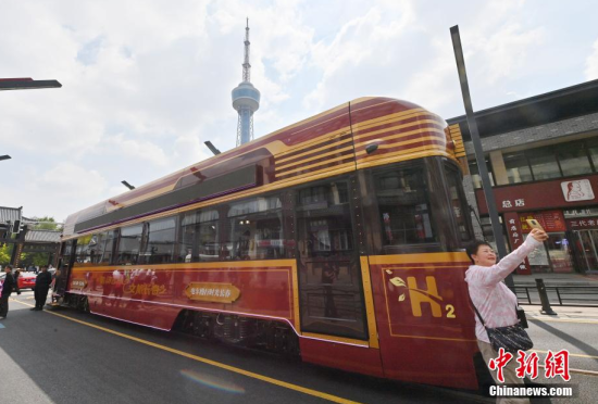 6月4日,吉林長春,市民在氫能源文旅專列旁拍照。該專列由中車長客研制,以歷史文化街區(qū)新民大街建筑群為設(shè)計(jì)靈感,車內(nèi)君子蘭花海主題內(nèi)飾與復(fù)古留聲機(jī)相映成趣。列車采用三級(jí)安全防護(hù)氫能系統(tǒng),單次加氫續(xù)航320公里。中新社記者 張瑤 攝