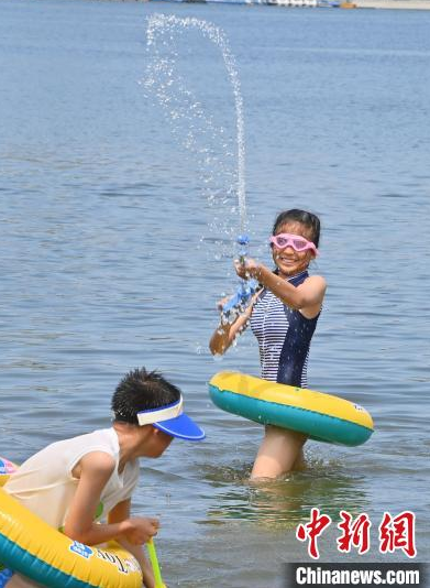 7月8日,吉林長春,小朋友來到南湖公園戲水避暑。長春的高溫“桑拿天”已持續(xù)多日,大批市民來到公園親水納涼。中新社記者 張瑤 攝
