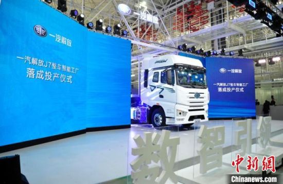 中新網(wǎng)長(zhǎng)春12月14日電 (孫博妍 高龍安)14日,中國(guó)“汽車(chē)城”長(zhǎng)春的重點(diǎn)項(xiàng)目一汽解放J7整車(chē)智能工廠正式落成投產(chǎn)。當(dāng)天,該工廠生產(chǎn)的首輛量產(chǎn)J7重卡下線(xiàn)。