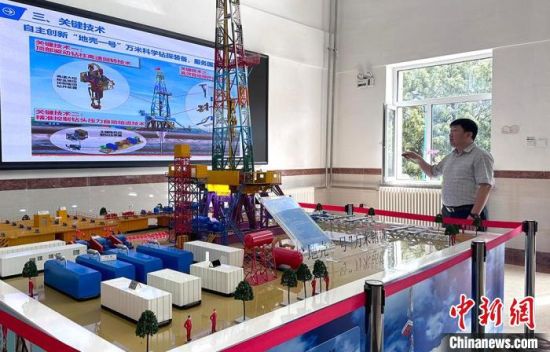 劉寶昌介紹“地殼一號(hào)”萬(wàn)米鉆機(jī)。 郭佳 攝