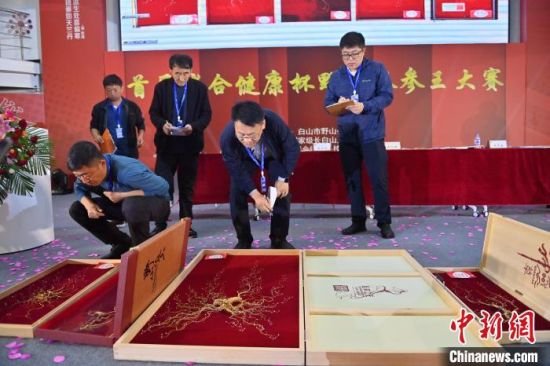 2023年9月28日,吉林撫松,參王大賽評(píng)比現(xiàn)場(chǎng)。(資料圖) 張瑤 攝