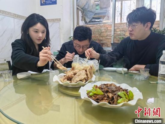 來(lái)自天津的游客趙瀟虹攜家人在吉林過年,一家人不僅品嘗鍋包肉,還對(duì)各餐館的鍋包肉進(jìn)行了對(duì)比。“每家菜的特點(diǎn)都不一樣,有的是酸甜口味占優(yōu),有的是肉片特別有嚼勁。”