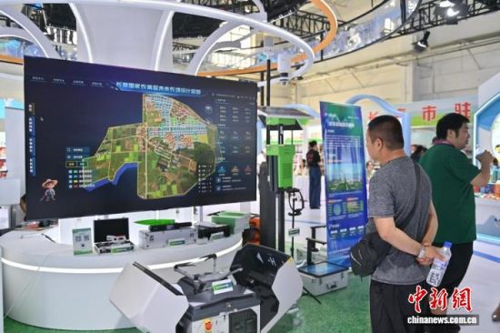 參觀者在參觀長春國家農高區(qū)未來農場設計藍圖!埇 攝